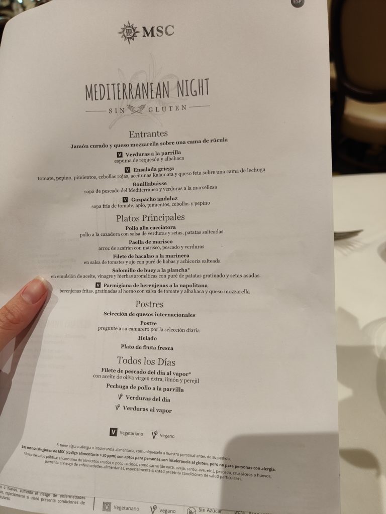 Sobre intolerancias alimenticias, hay un formulario en la Web de MSC Cruceros que deberás rellenar. Si no lo encuentras, llama a atención al cliente de MSC Cruceros.