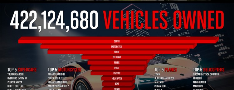 GTA V Online cumple un poco más de un año. Este juego está camino de convertirse, junto con Tetris, de los más vendidos y con más éxito de la historia. Aquí tenéis una infografía oficial de Rockstar en el que se nos presentan estadísticas y datos curiosos del juego. Algunos de los datos más curiosos son: …